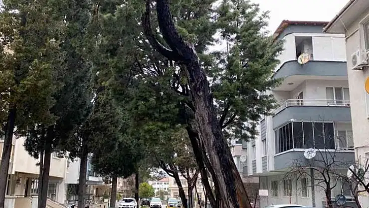 Muğla'nın Menteşe ilçesinde tehlike arz eden ve kökleri kurumuş ağaçlar ilgili kurumların raporu sonrası kesiliyor.