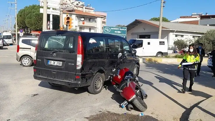 Muğla'nın Milas ilçesinde minibüs ile motosikletin çarpışması sonucu meydana gelen kazada bir kişi yaralandı.