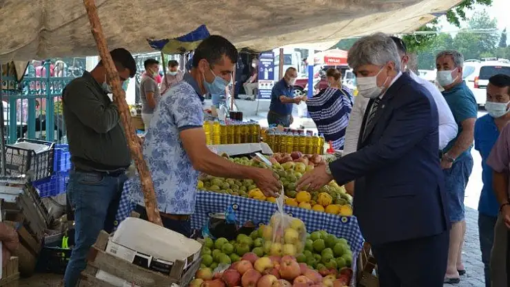 Fethiye Ziraat Odası Başkanı Kenan Karayiğit, kendisini üretici pazarı ziyaretine davet etmelerine teşekkür ederek, “Üretici pazarımızda her hafta tezgâh kuran ve ekmeğinin peşinde olan, 780 tane üretici esnafımız var burada. Vatandaşlarımızın ve esnaflarımızın dertlerini, taleplerini dinledikleri için ve beni de davet ettikleri için teşekkür ediyorum. Daha önce bazı milletvekillerimiz ve ilçe başkanlarımız buraya gelerek, bize haber dahi vermiyorlar. Özellikle pandemi sürecinde şu konuyu çok iyi anladık. Üreticimiz, üretmediği zaman, her şey duruyor. Bu süreçte, betonla, asfaltla ve villayla karın doymadığını hepimiz anladık. Yani çiftçimiz üretemezse, sadece ülkemiz değil tüm Dünya aç kalır. Bu anlamda üreten çiftçiye sahip çıkılmalı. Biz toplumumuzun her kesiminin kazanmasından yanayız. Hükümet yetkilileri, pandemi sürecinde her mesleğe paket sağladı. Ama ne yazık ki üreticiyi ve çiftçiyi hatırlayan bile yok. Sadece son zamanlarda kuraklıktan dolayı Ziraat bankası üreticilerin kredilerine erteleme yaptı. Erteleme de çözüm yolu değil. Zamanı gelince bu ödeme nasıl gerçekleşecek. Devletimizin üreticiye sahip çıkması gerekiyor” şeklinde konuştu.