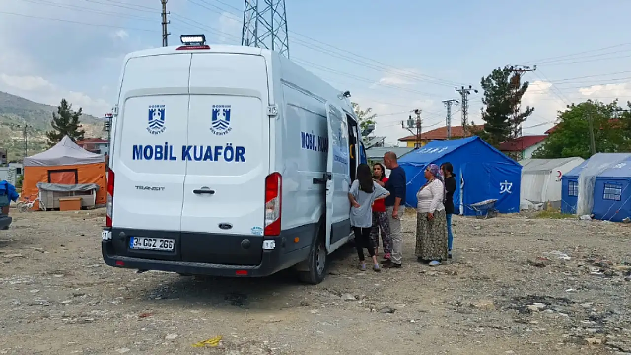 Bodrum Belediye Başkanı Ahmet Aras'ın talimatıyla Malatya'ya gönderilen Mobil Kuaför, deprem bölgesinde yaşayan vatandaşlara hizmetlerine devam ediyor