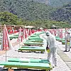 MUÇEV Plajları'nda çalışan personeller koruyucu elbise ve maskeler takarken, plaj girişlerinde ise ateş ölçümü gerçekleştiriliyor. MUÇEV, plajlarını güvenli şekilde hazırlarken, şezlong ve şemsiyeler sosyal mesafeyi koruyacak şekilde yerleştirildi. Doğal görüntünün bozulmaması için tek tip olarak hazırlanan şezlong ve şemsiyeler hemen her gün dezenfekte ediliyor. Plajlarının birçok noktasında dezenfekte alanları oluşturulurken, Plaj içerisinde Covıd-19 kural levhaları da yerleştirildi. MUÇEV yetkilileri, başta İztuzu plajı olmak üzere tüm plajlarda Covid-19 önlemleri ile ilgili denetlemelerin sık sık yapıldığını ve tatilcilerin rahat ve güvenli şekilde tatil yapmalarını sağladıklarını ifade ettiler.