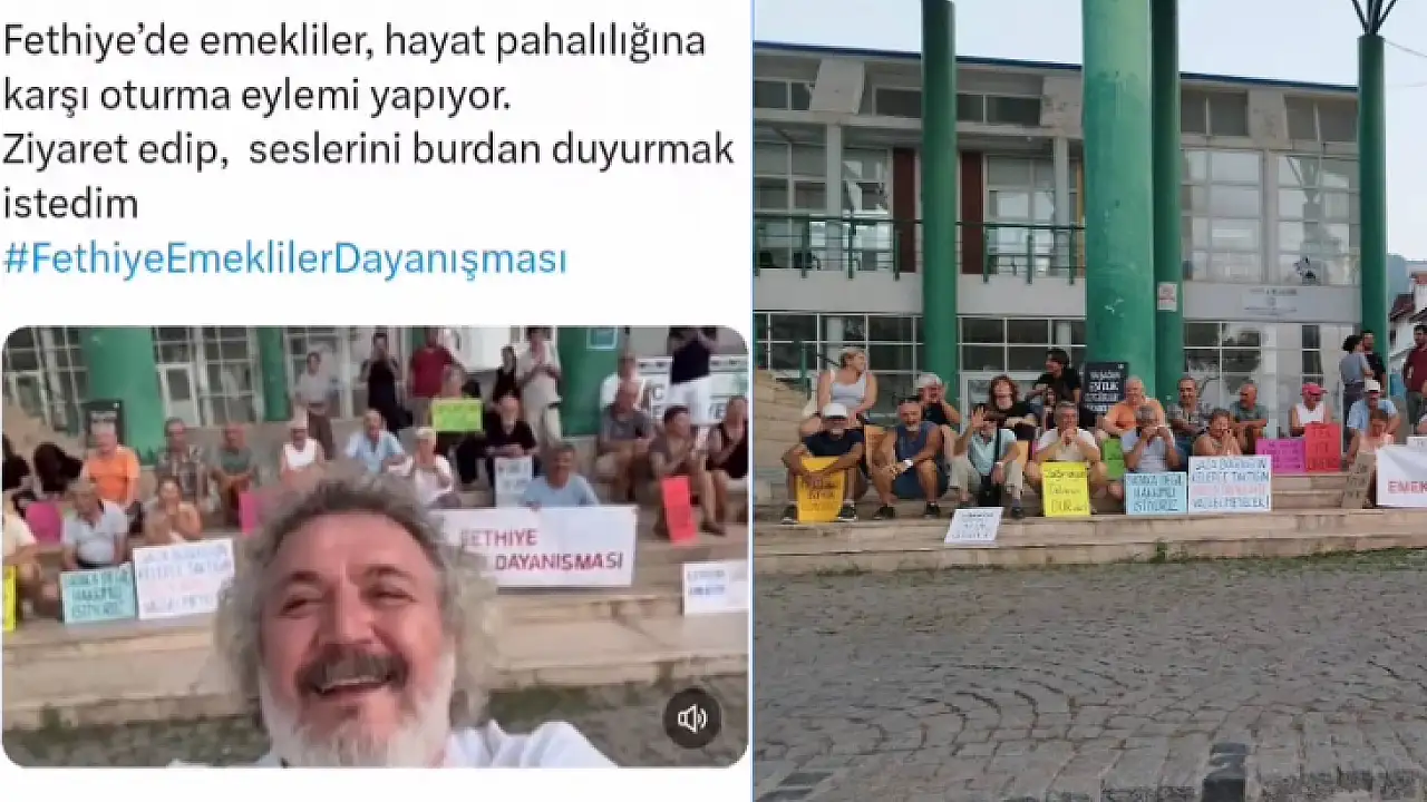 Fethiye Emekliler Dayanışması’nın 22 Ağustos Salı günü gerçekleşen 5. Eylemini Fethiye Özer Olgun Kültür Merkezi önünde gerçekleştirdi. Oturma eylemine, Mandıra Filozofu filminde canlandırdığı karakterle tüm Türkiye’nin sevgisini kazanan Müfit Can Saçıntı da katıldı. Sosyal medya hesaplarından paylaşım yaparak eyleme destek veren Müfit Can Saçıntı; “Fethiye’de emekliler, hayat pahalılığına karşı oturma eylemi yapıyor. Ziyaret edip, seslerini buradan duyurmak istedim. ” ifadelerini kullandı.