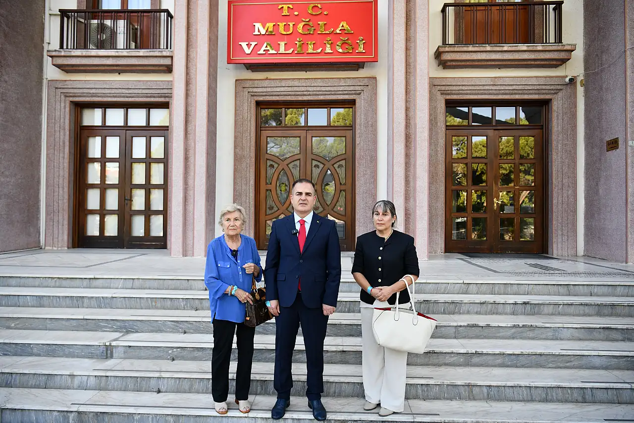Muğla Valisi Dr. İdris Akbıyık, Anadolu’dan Gazze’ye Platformu Hukuk Sorumlusu Ayşegül Mungan ve filoya katılan Ayçin Kantoğlu’nun annesi Gülser Özesen ile birlikte Muğla Valiliği önünde basın açıklaması yaptı. Vali Akbıyık açıklamasında şu ifadelere yer verdi: “Bildiğiniz gibi tarihin en büyük soykırımı gerçekleşiyor. Bütün dünyanın gözü önünde bebeklerden yaşlılara kadar, kadınlar, çocuklar katlediliyor. Hiçbir canlıya reva görülmeyecek işkenceler maalesef Gazze’de, Filistin’de devam ediyor. Bu soykırımı protesto etmek ve katil İsrail’e dur demek amacıyla bildiğiniz gibi Sumud filosu yola çıktı. Sumud filosunda Muğla’dan da Ayçin Kantoğlu Hanımefendi şu anda filoda. Biz buradan Sumud filosuna selamlarımızı yolluyoruz. Ayçin Hanım’ın Gazze için, Filistin için gayret sarf eden, bu zulmün ve soykırımın durması için emek sarf eden herkesi kutluyoruz, tebrik ediyoruz. Muğla olarak da onların yanında olduğumuzu buradan ifade etmek istiyoruz.