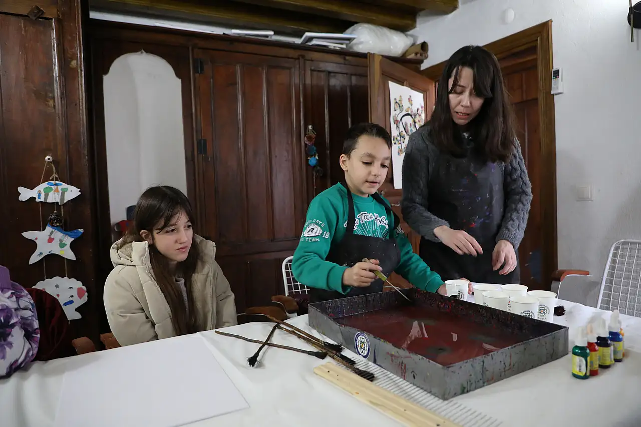 Gözcüler Evi’nde düzenlenen ebru atölyesine katılan 10 yaşındaki Hüseyin Can Konya, ara tatil döneminde düzenlenen etkinliklerin kendisini mutlu ettiğini belirterek, “Evde canımız sıkılmıyor, burada arkadaşlar ediniyoruz ve eğlenceli vakit geçiriyoruz” dedi.