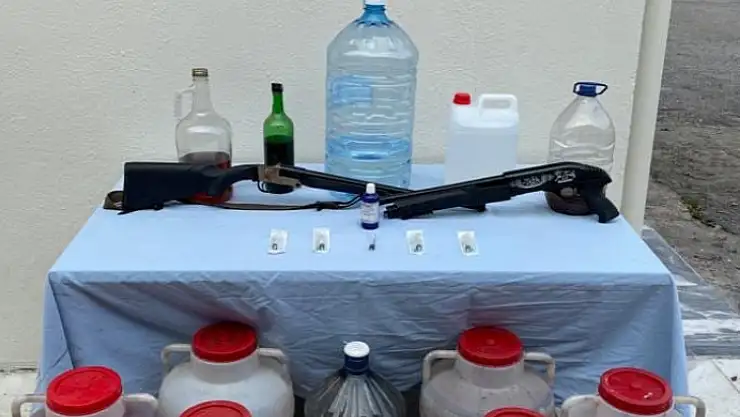 Muğla İl Jandarma Komutanlığı çalışmalarına aralıksız olarak devam ediyor. Edinilen bilgiye göre jandarma ekipleri, istihbarı çalışmalar sonucu Yatağan ilçesinde 2 ayrı adrese baskın gerçekleştirdi. Cumhuriyet ve Yayla mahallelerinde ikamet eden G.T. ve D.N. isimli şahısların evlerinde kaçak içki ürettiği bilgisine ulaşan Muğla İl jandarma Komutanlığı’na bağlı KOM Şube Müdürlüğü ve Yatağan İlçe Jandarma Komutanlığı ekipleri, gerçekleştirdiği operasyonlarda 2 şüpheliyi yakalayarak gözaltına aldı. İkametlerde yapılan aramalarda ise 250 litre el yapımı içki, 1 adet tek kırma ruhsatsız tüfek, 1 adet ruhsatsız pompalı tüfek, 5 litre etil alkol, 2 litre etil alkolden imal edilmiş alkol, 100 mililitre anason yağı ve 5 adet rakı yapımında kullanılan enjektör ele geçirildi. Yakalanarak gözaltına alınan 2 şüpheli hakkında adli işlem başlatıldı.