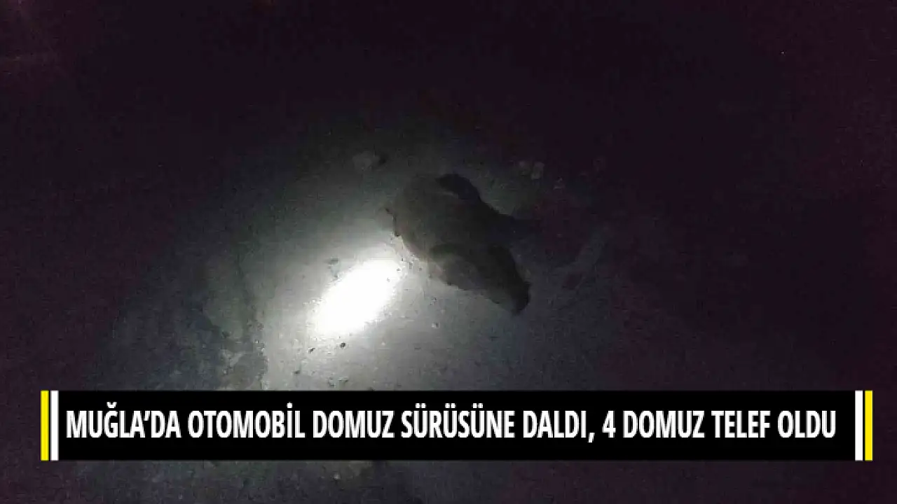 MUĞLA'DA OTOMOBİL DOMUZ SÜRÜSÜNE DALDI, 4 DOMUZ TELEF OLDU