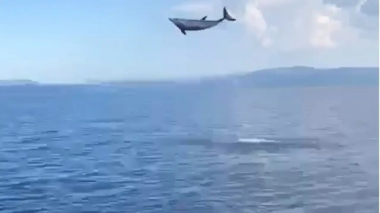 Muğla'nın Gökova Körfezi'nde denizde tekne ile gezintiye çıkan vatandaşlar tarafından yunusların denizdeki gösterileri saniye saniye görüntülenirken, yunusların sudan fırlayıp adeta uçarak tekrar denize dalması görenleri şaşırttı.