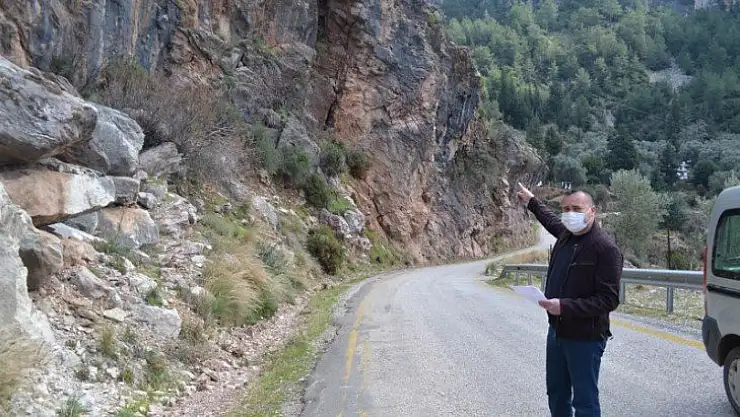 Fethiye'nin Faralya Mahallesi'ne ulaşımı sağlayan yol üzerinde bulunan kayaların her geçen ayrılmaya devam ettiği belirtildi. Faralya Mahalle Muhtarı Hasan Karaburun, 'Mahalleye başka giriş çıkış yolu yok. Kayalar giderek ayrılıyor. Her an yola düşebilirler. Bir facia yaşanabilir' dedi.