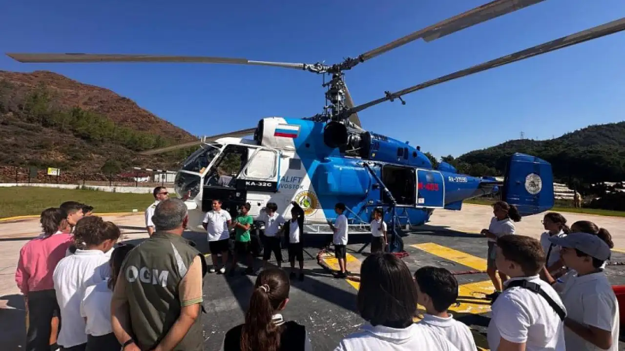 Marmaris Evren Paşa İlköğretim okulu öğrencileri, öğretmenleri Seda Öğretmen eşliğinde, Hisarönü Mahallesi'nde bulunan Orman İşletme Şefliği'ne konuşlu yangın helikopteri pilotu Mehmet Aktoz ile tanışarak, yangınlara nasıl müdahale edilir, pilot olmak için neler yapılır, başlarına gelen olaylar nelerdir gibi sorular sorarak bilgiler aldı.