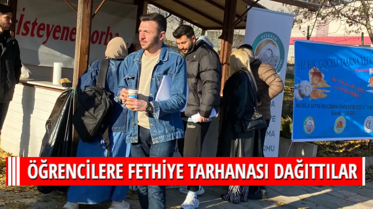 Muğla merkezde bulunan ve dört yıldır faaliyetlerini sürdüren Beşkaza Kültür ve Dayanışma Platformu, merkez kampüste öğrencilerin sınav haftasına girmesi nedeniyle C kapısı önünde 'Fethiye Tarhanası' dağıtımı yaptı.