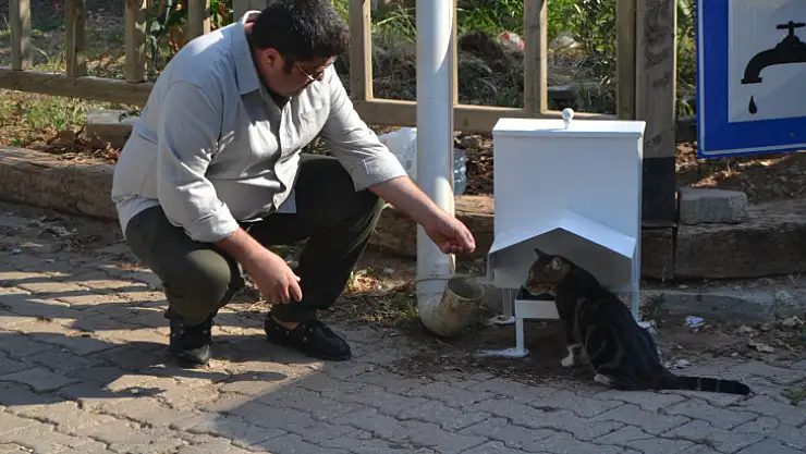 Ölüdeniz'de sokak hayvanları için özel mama kapları yerleştirildi