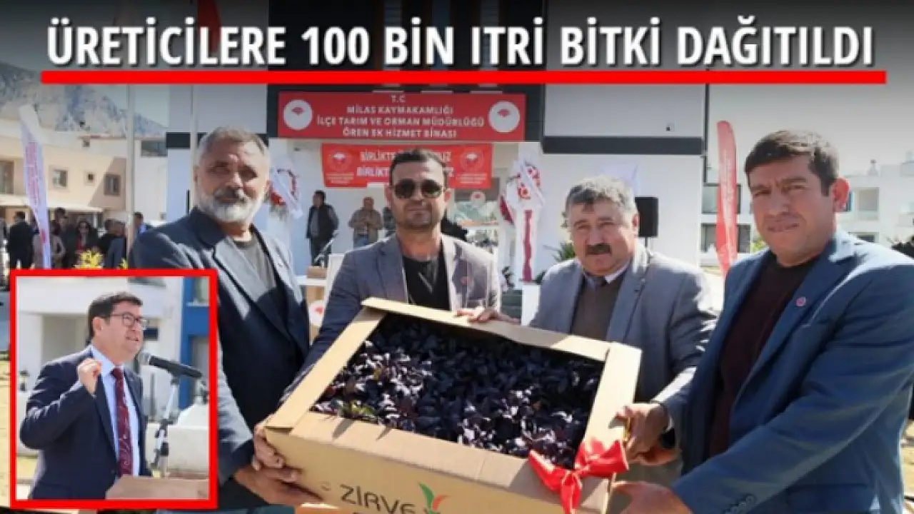 Milas İlçesi Ören mahallesindeki tamamı hayırsever vatandaşların katkıları ile 3 milyon 800 bin liraya yapılan İl Tarım ve Orman Müdürlüğü ek hizmet binasında gerçekleştirilen programda 100 bin ıtri tıbbi bitki ile 5 bin adet meyve fidanı dağıtıldı. Ölmez ağacı ‘zeytin' fidanları, depremde kaybedilen vatandaşlar anısına temsilen Ören'deki ek hizmet binasının bahçesine dikildi.