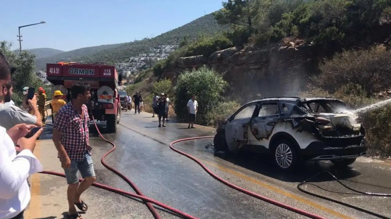 Muğla'nın Bodrum ilçesinde seyir halindeki otomobilde çıkan yangın, otluk ve makilik alana sıçradı. Yangın, ekiplerin müdahalesiyle söndürüldü.