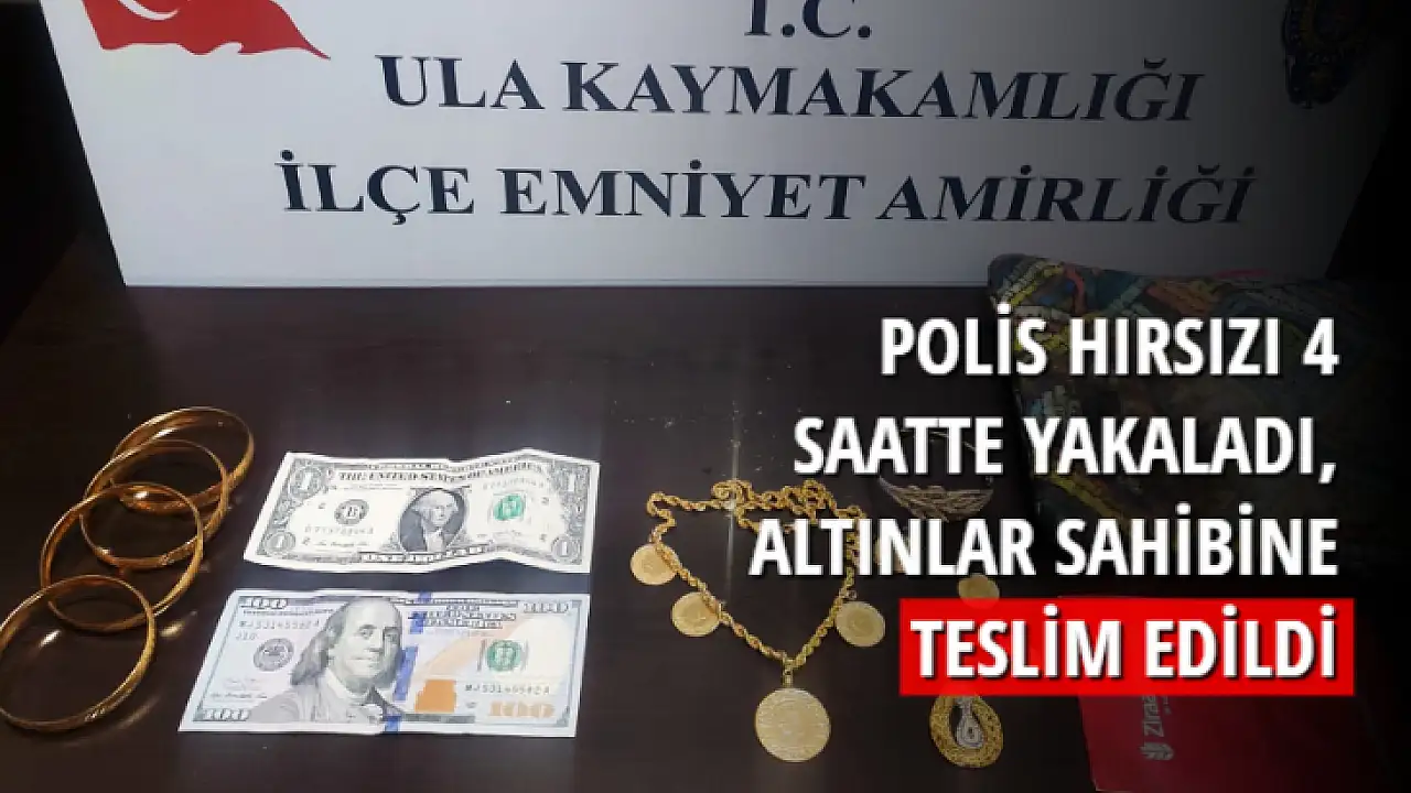 Muğla'nın Ula İlçesinde evden hırsızlık yaptığı tespit edilen şahıs, Ula Polis Merkezi Suç Araştırma ekipleri tarafından yakalandı. Çalınan çok sayıda ziynet eşyası ve döviz sahibine teslim edildi.