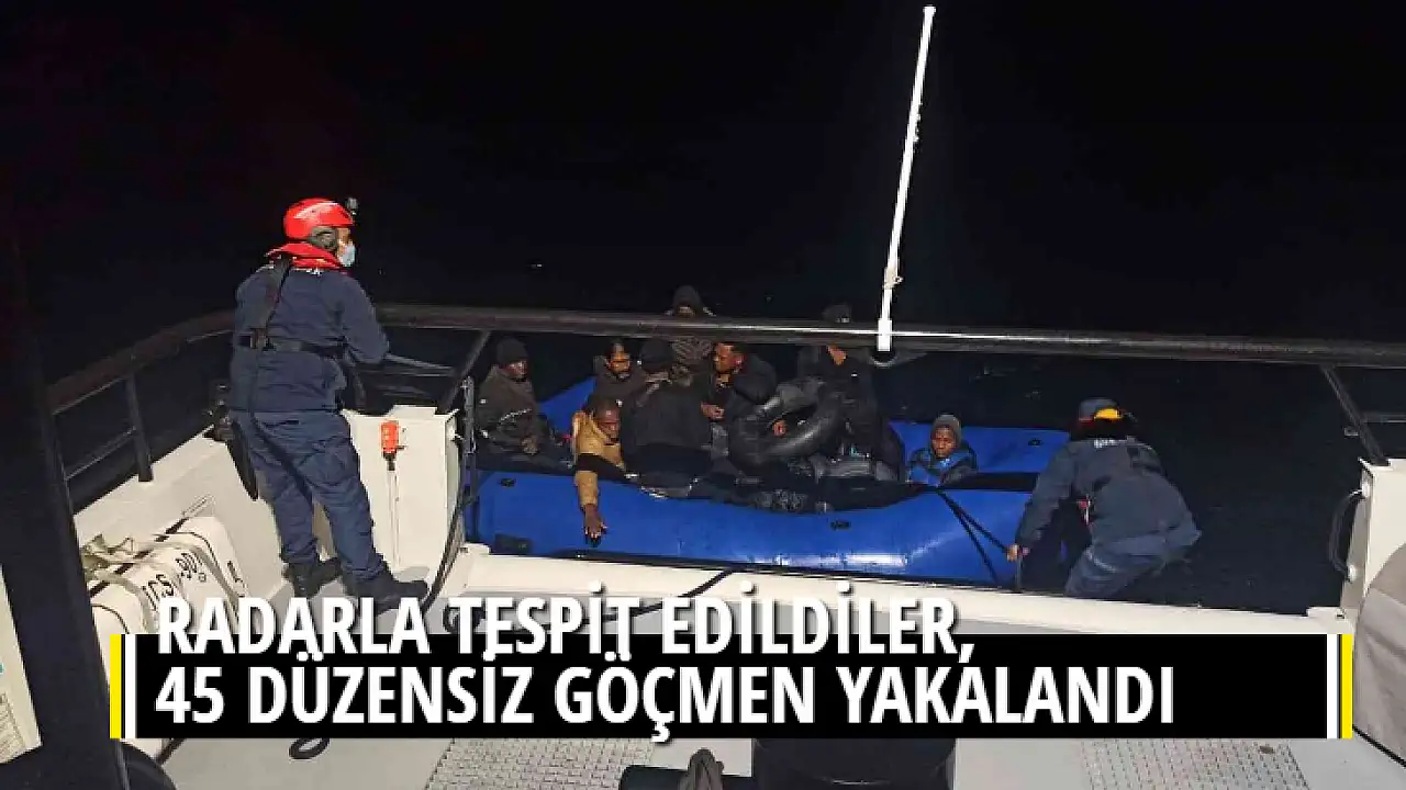 Muğla'nın Bodrum ilçesi açıklarında radarla tespit edilen 45 düzensiz göçmen yakalandı.