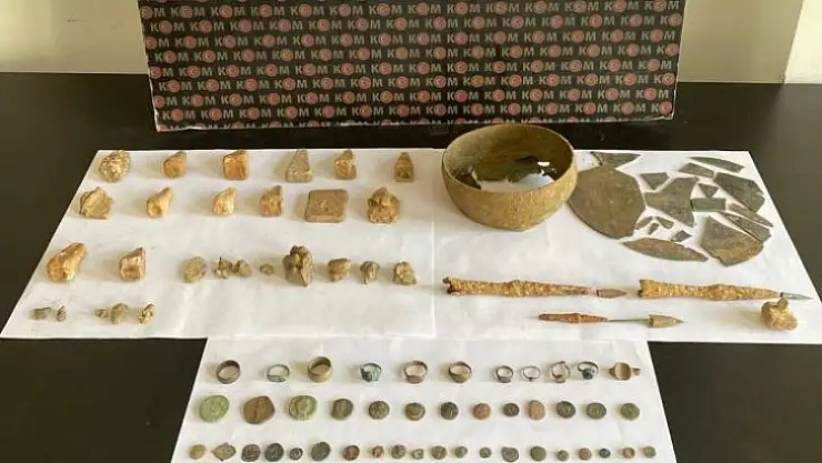 Muğla İl Emniyet Müdürlüğü Kaçakçılık ve Organize Suçlarla Mücadele (KOM) Şubesi ekipleri, tarihi eser kaçakçılığı ile mücadele çerçevesinde çalışmalarına aralıksız devam ediyor. Edinilen bilgiye göre ekipler, Ula'nın Akyaka Mahallesi'nde S.T.'nin elindeki tarihi eserleri satmak için müşteri aradığı bilgisine ulaştı. Muğla Cumhuriyet Başsavcılığı koordinesinde Kaçakçılık Suçları Büro Amirliği görevlileri, şüphelinin evine dün sabah saatlerinde operasyon düzenledi. Operasyonda Roma ve Bizans dönemlerine ait olduğu değerlendirilen 88 sikke, 25 kurşun, 11 yüzük, 3 mızrak ucu, 3 ok ucu, 1 kap olmak üzere 132 eser ele ile 2 dedektör el geçirildi.