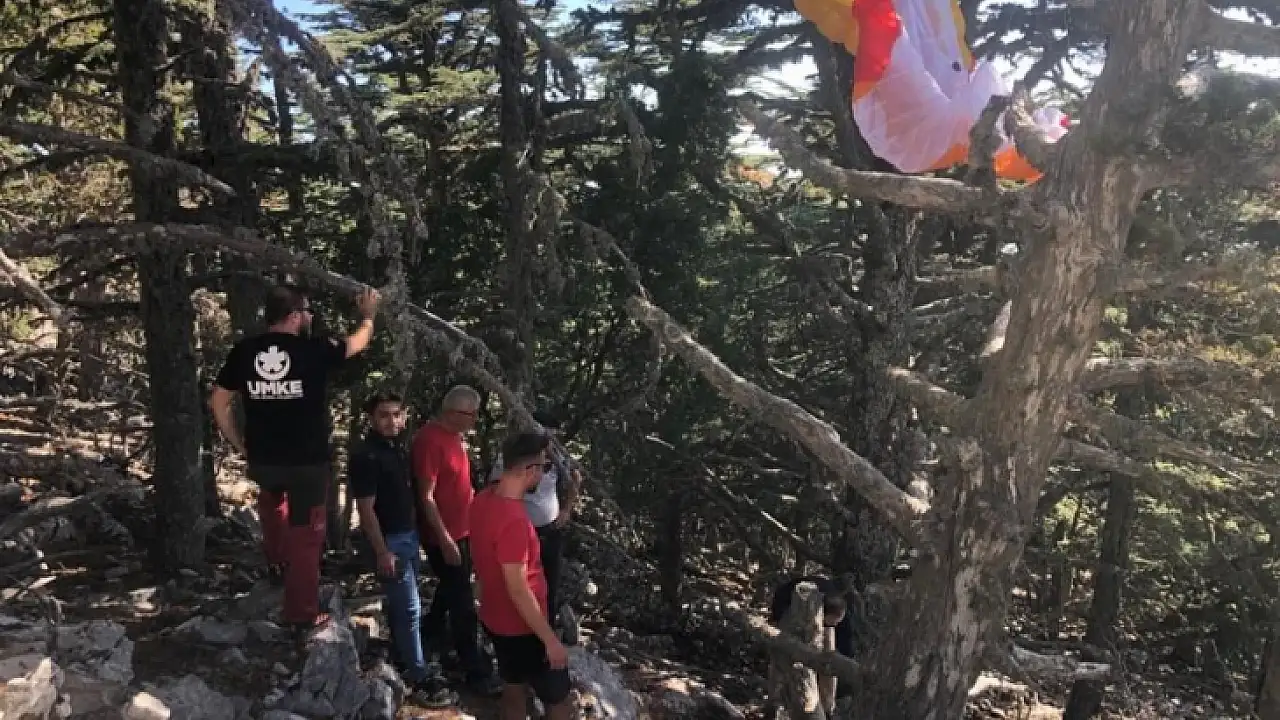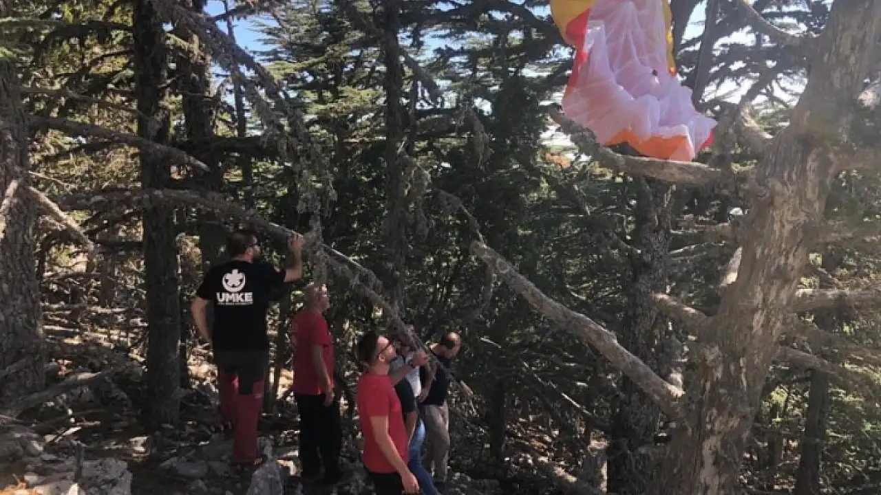 Muğla'nın Fethiye ilçesinde, bin 700 metre yükseklikten atlayan ve yamaç paraşütü ağaca dolanan Rus uyruklu pilot, UMKE tarafından kurtarıldı.