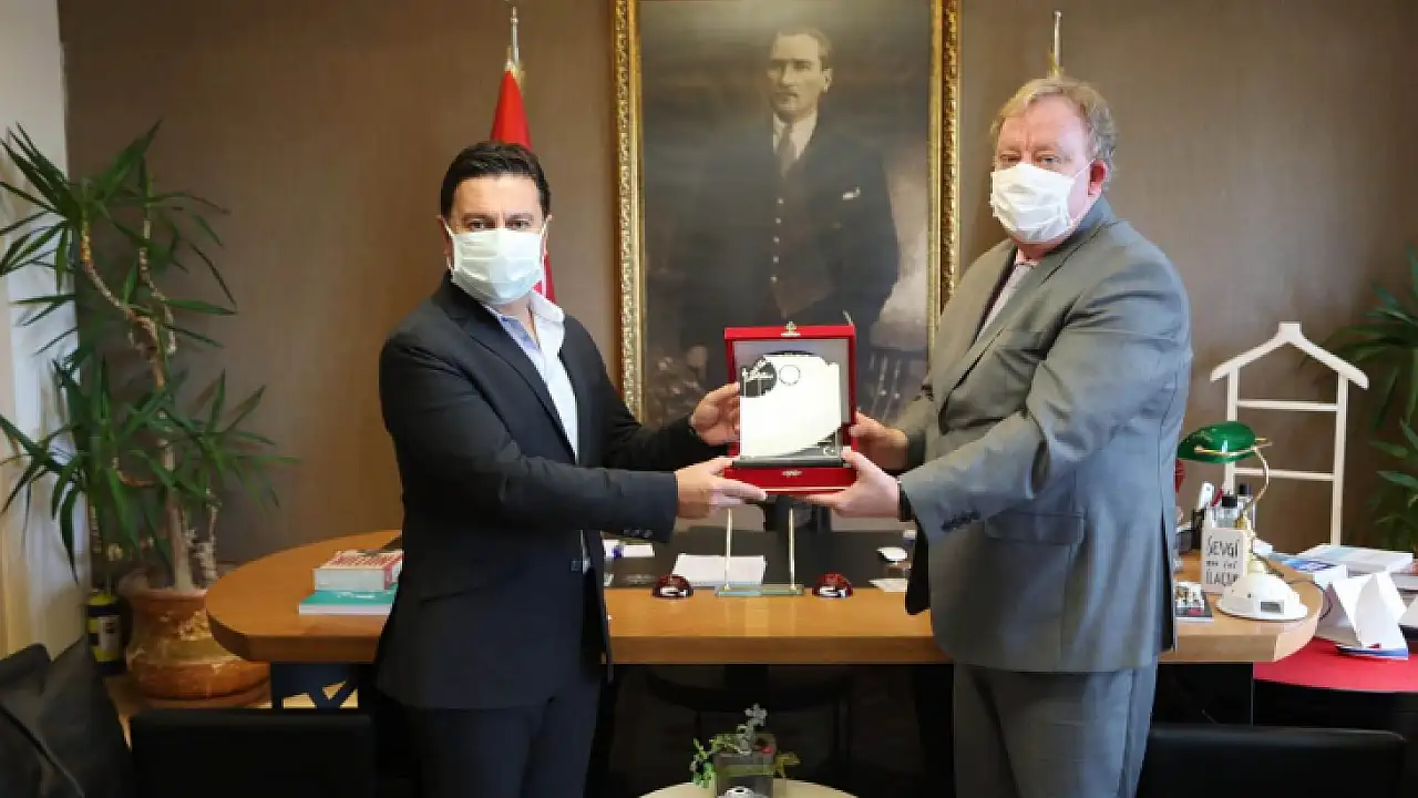 Rusya'nın Antalya Başkonsolosu Oleg Rogoza, Bodrum Belediye Başkanı Ahmet Aras'ı makamında ziyaret etti.