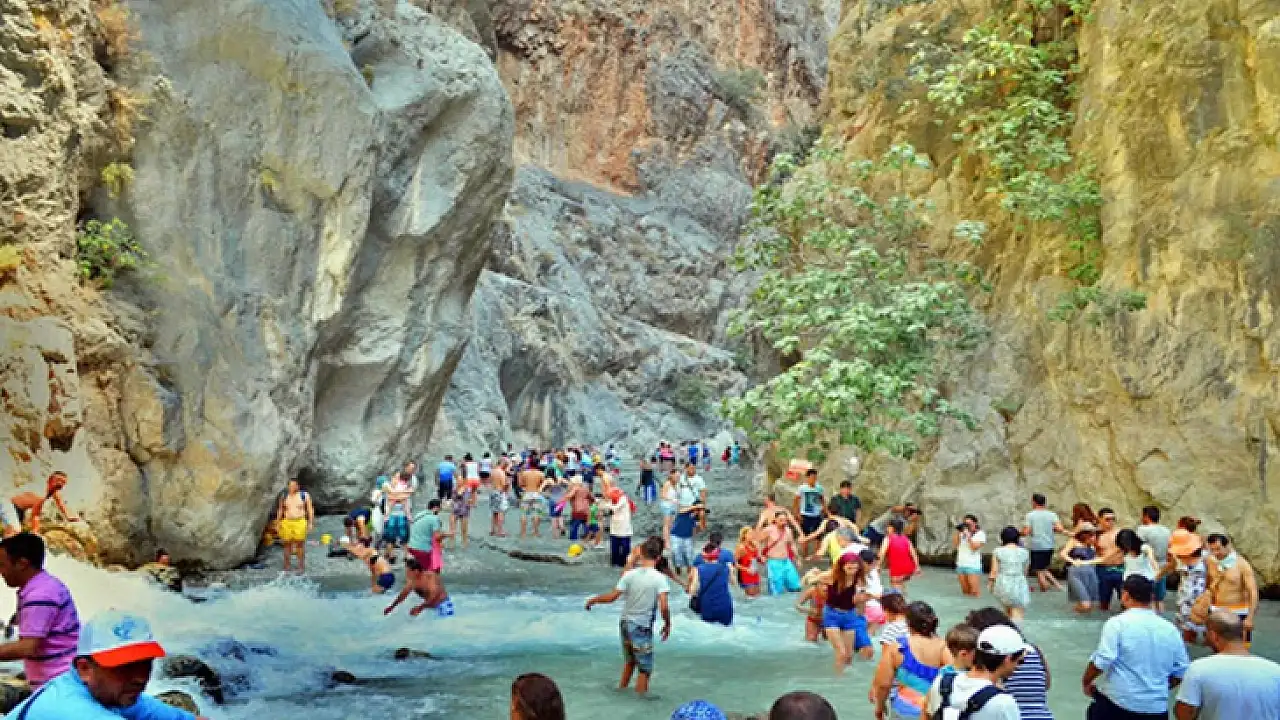 Muğla'nın Seydikemer ilçesinde bulunan Saklıkent Kanyonu, Kurban Bayramı tatilinde tatilcilerin akınına uğradı.