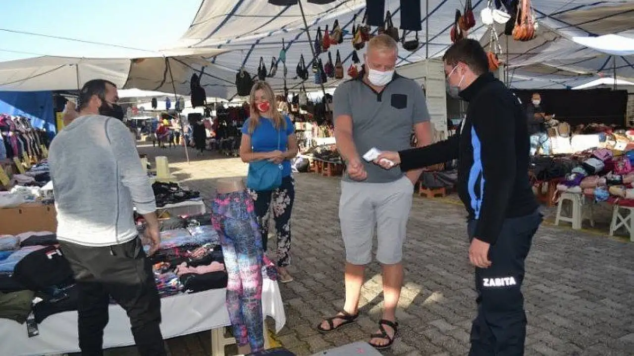 Kovid-19’a karşı özverili bir çalışma yürüten Fethiye Belediyesi Zabıta ekipleri, düzenli olarak anonslarla vatandaş ile esnafları maske ve sosyal mesafe uyarısı yapıyor. Sabah saatlerinde esnafların ateşlerini de ölçen ekipler, pazar içerisinde sık sık denetlemeler de gerçekleştiriyor. Pazara alışveriş yapmaya gelenlerin ve pazarcı esnafının kurallara uyduğu belirtildi.