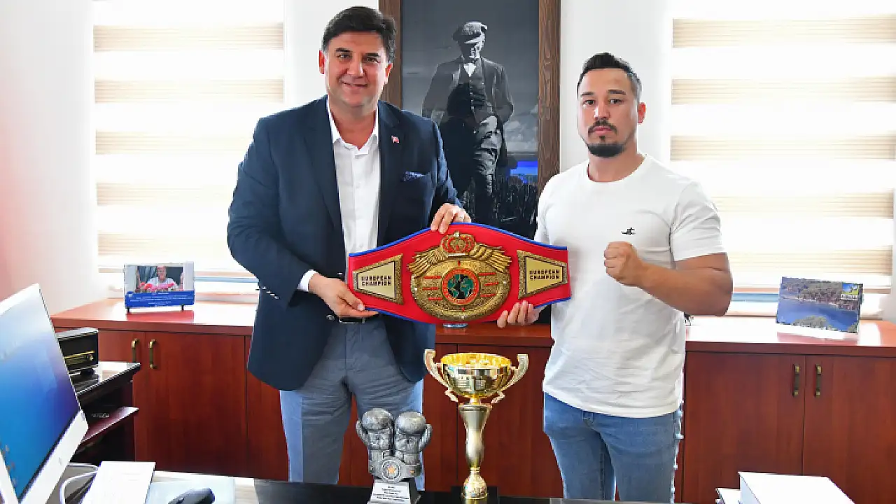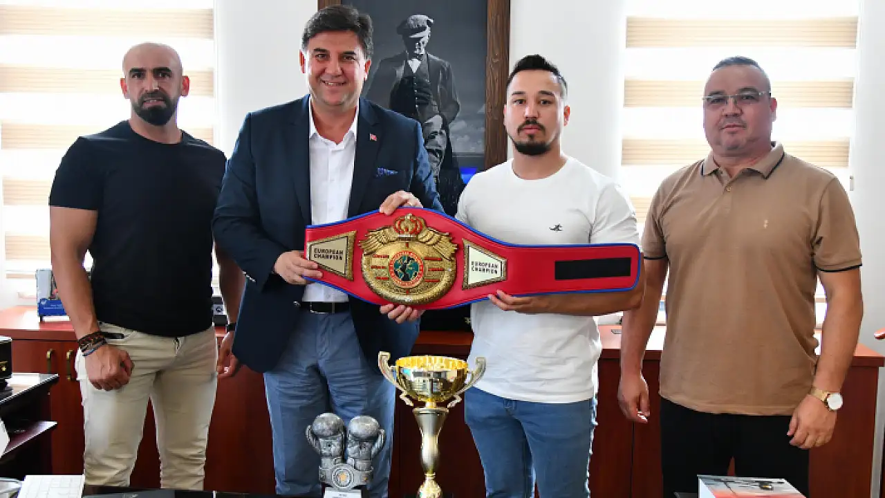 Avrupa şampiyonu ve Uluslararası Şampiyonluk Kupası Şampiyonu olan Fethiyeli sporcu Kubilay Alcu, Fethiye Belediye Başkanı Alim Karaca'ya ziyarette bulundu.