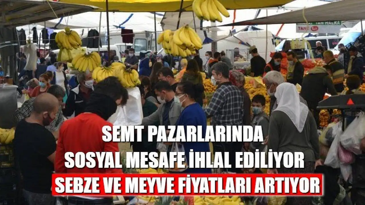 Semt pazarlarında sosyal mesafe ihlal ediliyor