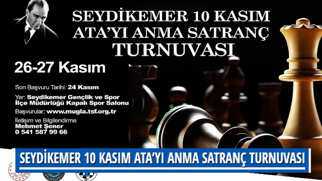 Seydikemer Belediyesi, Seydikemer Gençlik ve Spor Müdürlüğü ve Seydikemer Satranç İlçe Temsilciği tarafından organize edilen Seydikemer 10 Kasım Ata'yı Anma Satranç Turnuvası başvuruları başladı.