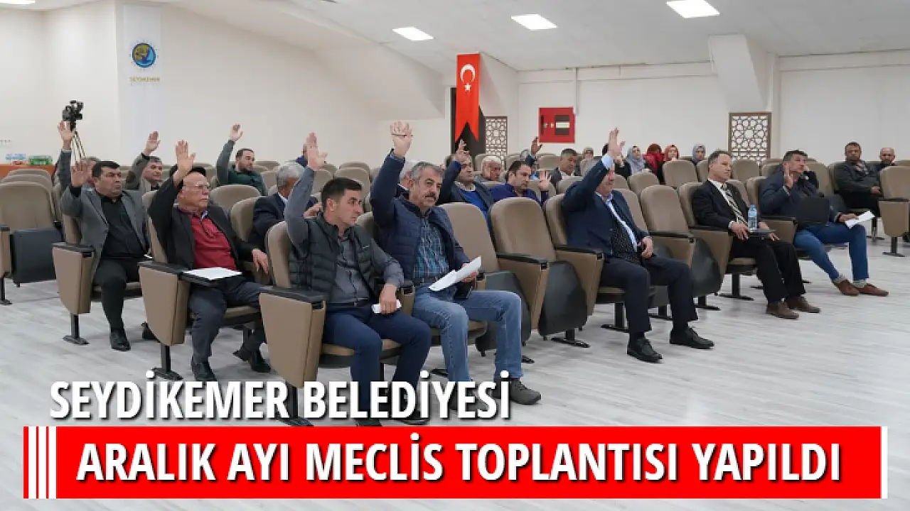 Seydikemer Belediyesi Aralık Ayı Meclis Toplantısı Seydikemer Belediye Başkanı Yakup Otgöz’ün başkanlığında Belediye Toplantı salonunda gerçekleşti. Toplantının kâtip üyeliklerini Mustafa Karakuş ve Zeynep Yalçınsoy yaptı. Toplantıda 1 ek gündem ve 2 gündem maddesi olmak üzere 3 madde görüşülüp karara bağlandı.