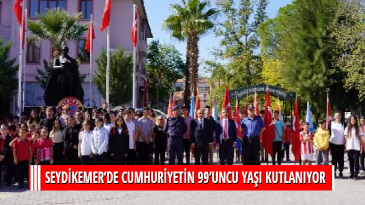 Tüm yurtta olduğu gibi Seydikemer’de de 29 Ekim Cumhuriyet Bayramı’nın 99’uncu yıldönümü kutlamaları başladı. Seydikemer Cumhuriyet Meydanında düzenlenen resmî tören saat 12.30’da Atatürk Anıtı’na çelenk sunulmasıyla başladı. Tören, saygı duruşunda bulunulması ve İstiklal Marşı’nın söylenmesiyle son buldu.