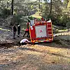 Seydikemer'in Çobanisa Mahallesi'nde çıkan orman yangınına müdahale eden itfaiye aracı, dere yatağındaki çökme nedeniyle ormanın içinde saplandı. Ekiplerin hem yangınla hem de araç kurtarma çalışmasıyla mücadelesi sürüyor.
