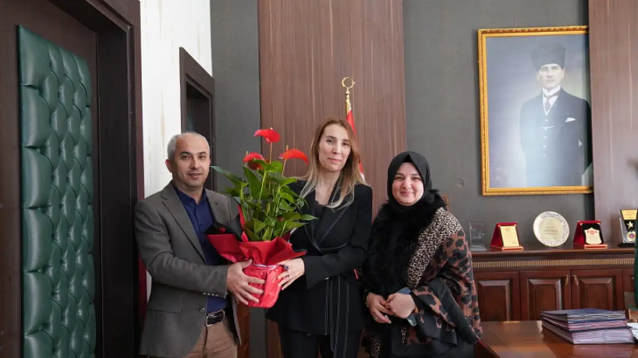 Kaymakam Büyüker’i ziyaretinin ardından Başkan Vekili Büyükaydın, Belediye Hizmet Binası geçerek Başkanlık Makamında Belediye Meclis Üyesi Zeynep Yalçınsoy’a da çiçek takdiminde bulunup, 8 Mart Dünya Kadınlar Günü’nü kutladı.