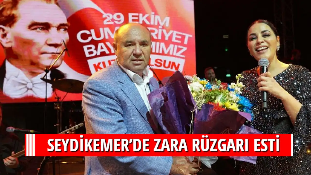 29 Ekim Cumhuriyet Bayramı kutlamaları kapsamında Seydikemer Belediyesince Belediye Hizmet Binası önünde düzenlenen programda ilk olarak Sevtuğ Kasapbaşoğlu sahne aldı. Genç şarkıcı, performansıyla konseri izlemeye gelenleri doyasıya eğlendirdi. Çocukların büyük ilgisiyle karşılaşan Kasapbaşoğlu, zaman zaman sahneden inip çocukların arasında şarkılarını seslendirdi. Daha sonra Türk Halk Müziğinin sevilen ismi Zara sahne alarak, sevilen şarkılarını seslendirdi. Yaklaşık 2 saat sahnede kalan Zara, izleyenlere keyifli anlar yaşattı. Zara, ayrıca arabesk müziğin unutulmaz ismi Müslüm Gürses'i de anarak şarkılarını söyledi.