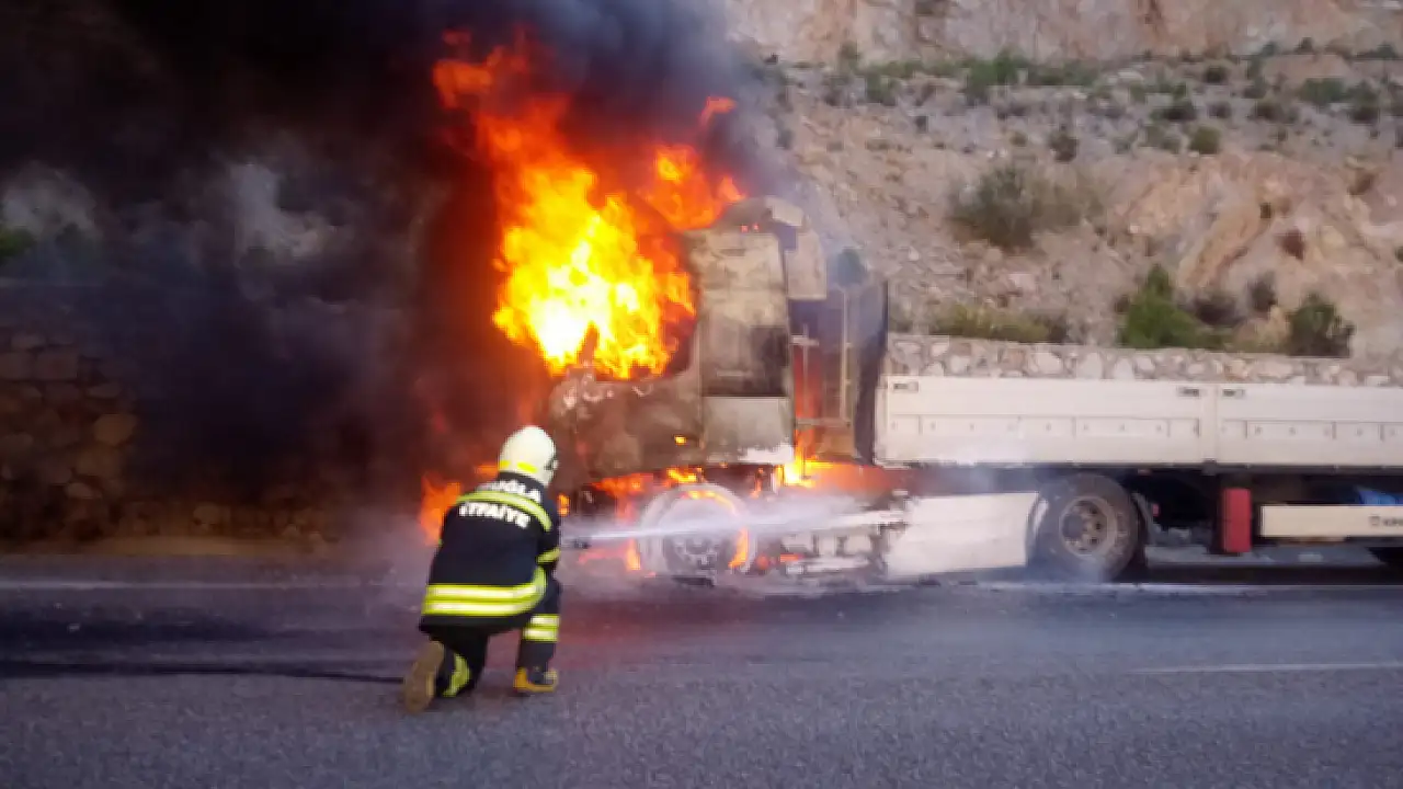 Milas'ta seyir halinde ki bir tır, yol ortasında alevlere teslim oldu. Saat 14.55 civarında çıkan yangın, itfaiye ekipleri tarafından söndürülerek kontrol altına alındı.