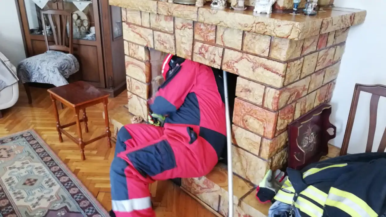 Şömine bacasında mahsur kalan yavru kedi kurtarıldı
