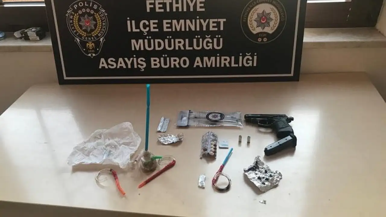 Muğla’nın Fethiye ilçesinde şüphe üzerine durdurularak aranan araçta silah ve uyuşturucu madde ele geçirilirken, olayla ilgili 3 şüpheli de gözaltına alındı.