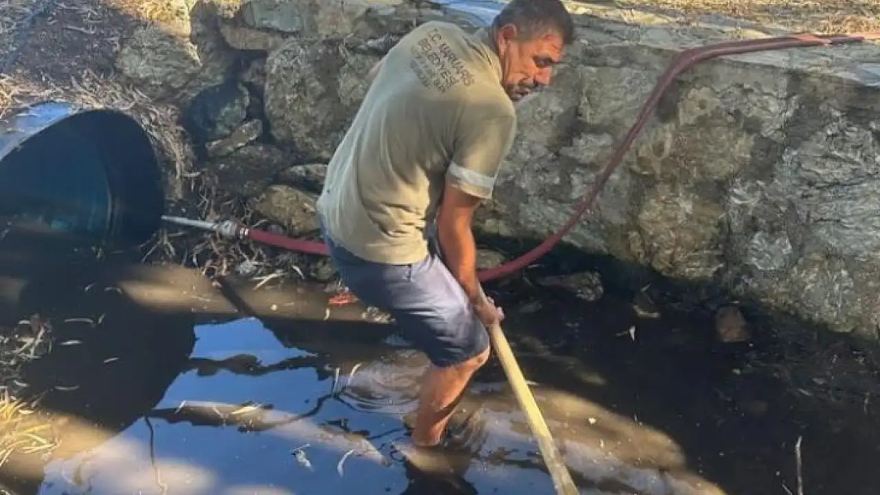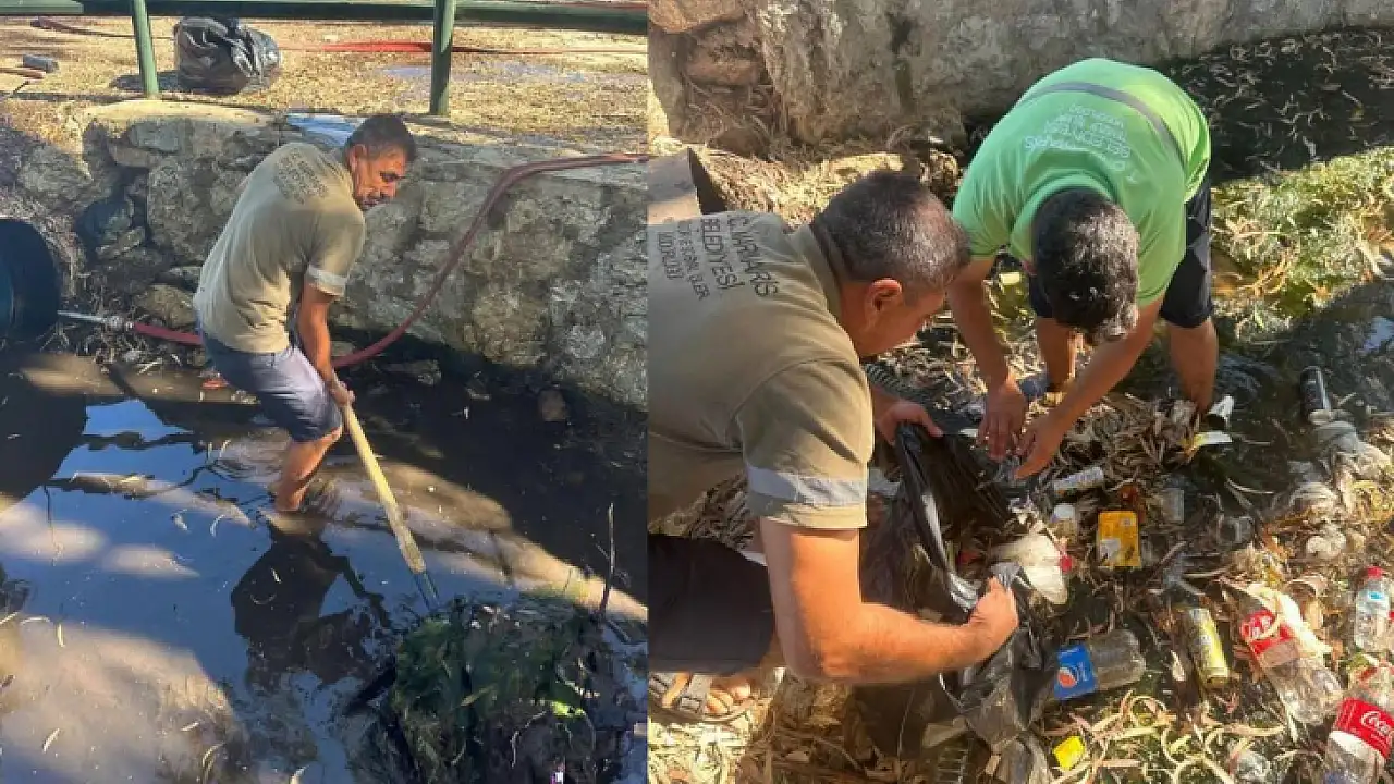 Marmaris Belediyesi Temizlik İşleri Müdürlüğü ekipleri derelerde sivrisinek ve koku oluşumunun önüne geçmek için başlattığı temizlik çalışmasına devam ediyor.