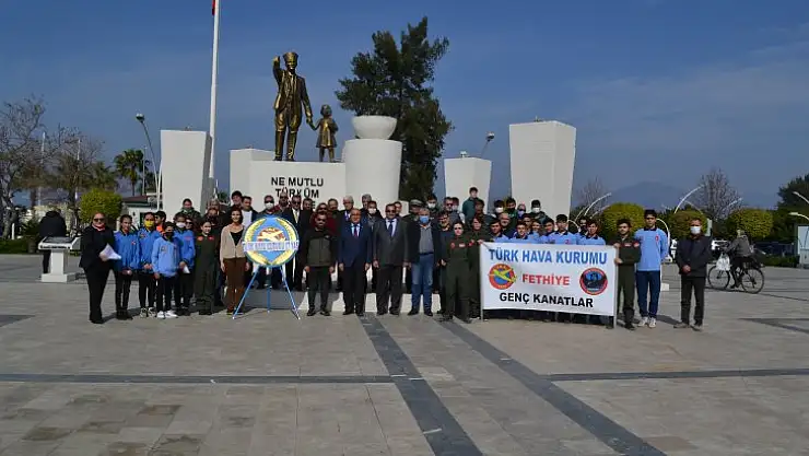 Türk Hava Kurumu’nun kuruluşunun 97 yılı Beşkaza Meydanı’nda Atatürk Anıtı’na Çelenk Sunma Töreni ile kutlandı. Kutlama töreni Saygı Duruşu ve İstiklal Marşı’nın okunması ile başladı. Ardından Türk Hava Kurumu Fethiye Şube Başkanı Mustafa Özkaya ve Genç Kanatlar Üyeleri tarafından Atatürk Anıtı’na Çelenk sunuldu.