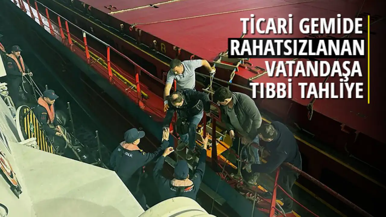 Ticari gemide rahatsızlanan şahıs kıyıda bekleyen sağlık kiplerine teslim edildi.