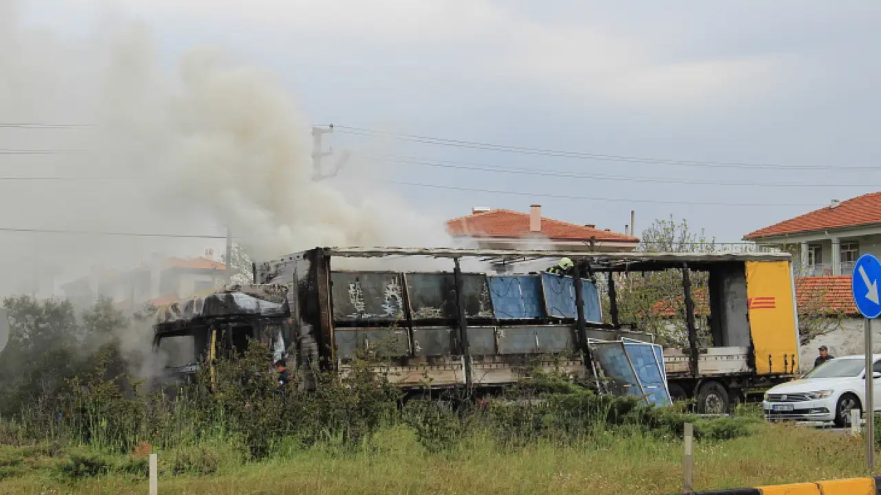 Yangının bir anda başladığını belirten tır sürücüsü Sinan A., “Yolda giderken aniden yağ ikaz lambası yandı. Sağa çektim. Araç yanmaya başladı. Mersin’den yola çıkmıştım. TÜVTÜRK istasyonlarına bu güneş panellerini bıraka bıraka gidiyordum” diye konuştu.