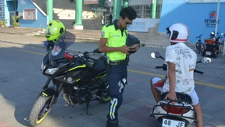 Fethiye'de trafiğe kapalı olan alanlarda motor kullanan sürücülere 314'er TL ceza kesildi.