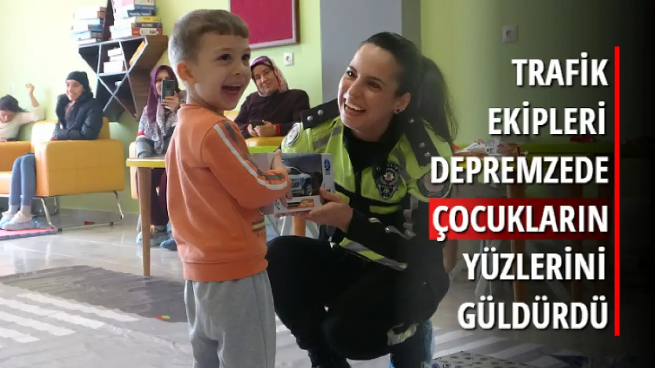TRAFİK EKİPLERİ DEPREMZEDE ÇOCUKLARIN YÜZLERİNİ GÜLDÜRDÜ