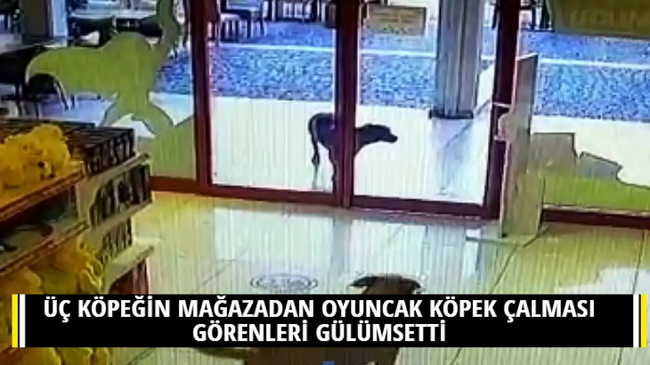 ÜÇ KÖPEĞİN MAĞAZADAN OYUNCAK KÖPEK ÇALMASI GÖRENLERİ GÜLÜMSETTİ
