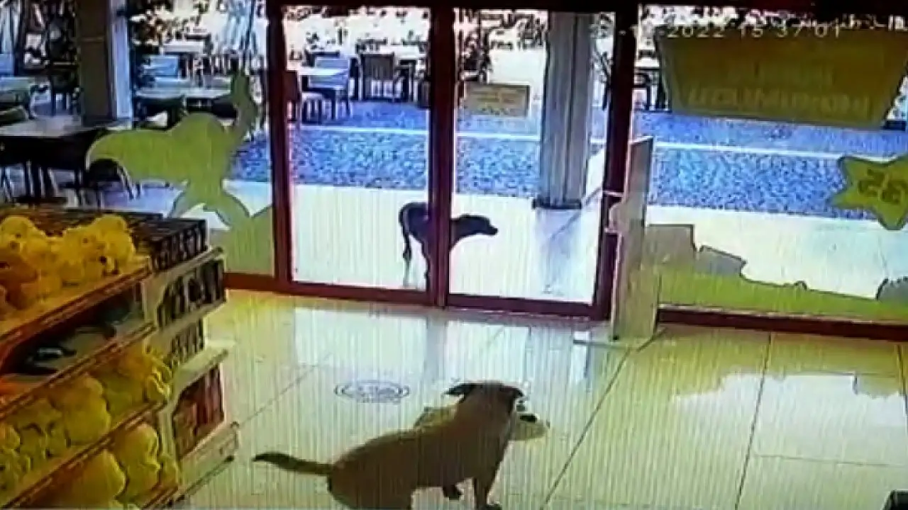 Bodrum’da bulunan Oasis alışveriş merkezine giren 3 köpek, AVM’de bulunan bir oyuncak mağazasına geldi. Sokak köpeklerinden biri kapı önünde beklerken, diğer 2’si içeri girdi. Köpeklerden birinin pelüş köpeği çalmasının ardından üç köpek de hızlıca mağazadan kaçarcasına uzaklaştı. O anlar ise güvenlik kameralarına yansıdı. Köpeklerin oyuncak çalması, mağazada çalışanların güvenlik kameralarını izlemesiyle ortaya çıktı. Köpeklerin profesyonel hırsız gibi oyuncak çalmaları, mağaza çalışanlarını da şok etti.