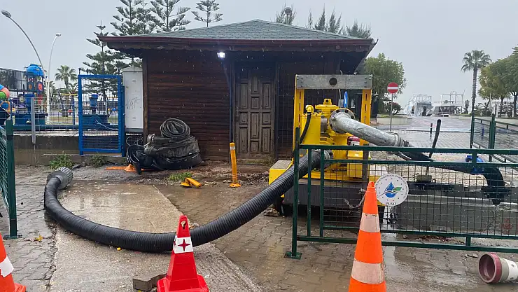 Fethiye'de etkili olan yağışların ardından Uğur Mumcu Parkı'nda bulunan yağmur suyu tahliye pompası çalıştırılarak su birikintilerinin önüne geçildi.