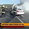 BARİYERLERE ÇARPAN OTOMOBİL ALEV ALDI