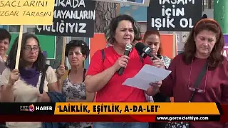 Fethiye Kadın Platformu Beşkaza Meydanı'nda 'Laiklik, eşitlik, adalet' sloganlarıyla açıklama yaptı