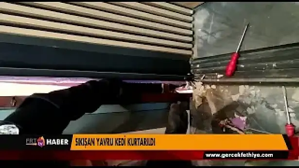 SIKIŞAN YAVRU KEDİ KURTARILDI