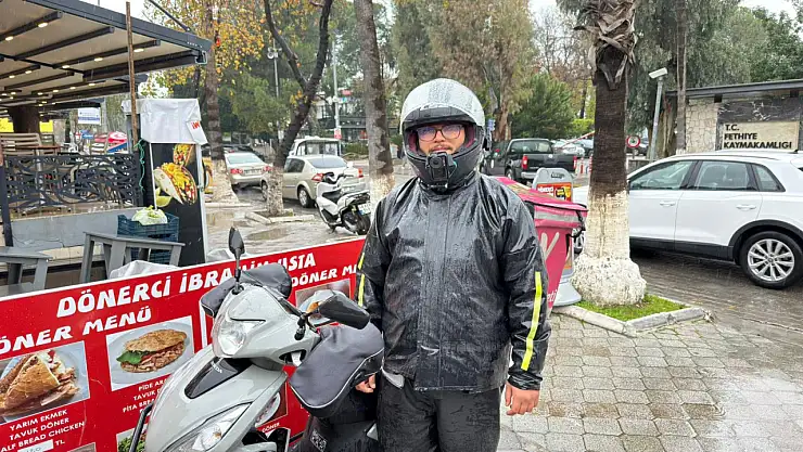 Fethiye'de kurye olarak çalışan Kaan Göçer, yağmurlu havalarda siparişlerin artmasının kazançlarını olumlu etkilediğini belirterek, en büyük sorunlarının trafikte fark edilmemek olduğunu söyledi.