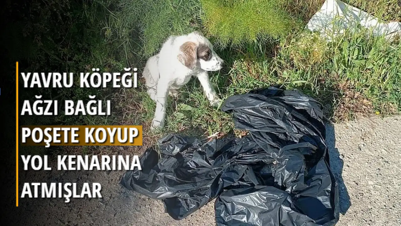 YAVRU KÖPEĞİ AĞZI BAĞLI POŞETE KOYUP YOL KENARINA ATMIŞLAR