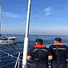Muğla'nın Bodrum ilçesi açıklarında yelkenli tekne içerisindeki 53 düzensiz göçmen kurtarıldı.